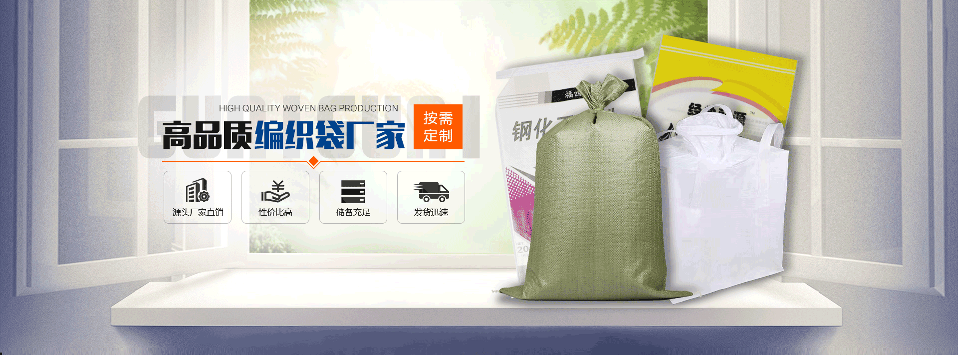 公司生產(chǎn)集裝袋,編織袋,噸袋,噸包,飼料袋,食品袋,軟包裝袋,軟托盤,塑料編織袋等一系列產(chǎn)品,方便大家選購。
